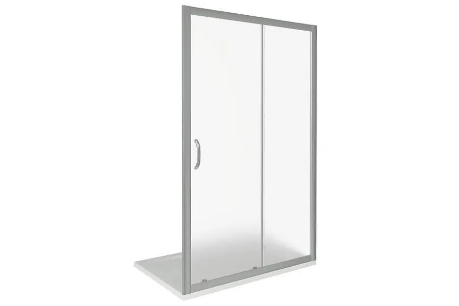 Душевая дверь Bas Infinity обладает размером 120х185 см. Конструкция состоит из двух секций: одной неподвижной и одной раздвижной. Устанавливается в облицованный кафелем угол или нишу ванной комнаты на поддон или непосредственно на пол со встроенным душевым каналом или трапом