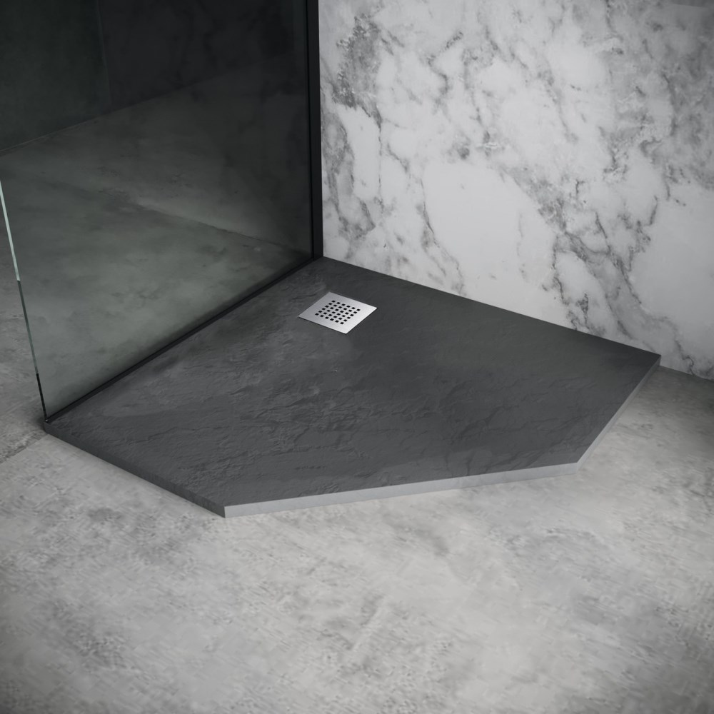 Душевой поддон Grossman Strong имеет размер 100х100 см. Форма — пятиугольная, низкий, цвет поддона графит. Для установки на пол и на подиум.