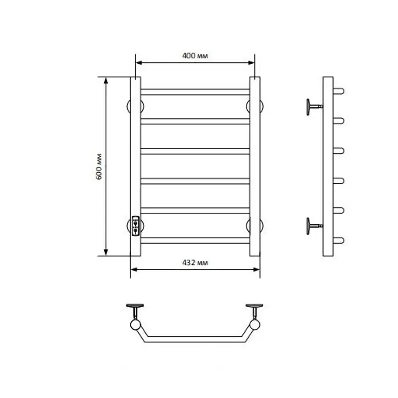 Полотенцесушитель электрический Санприз Виктория П6 400*600 11072 Хром глянцевый диммер слева