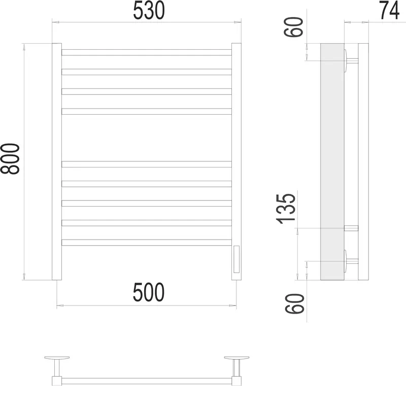 Полотенцесушитель электрический Terminus Сицилия 4670078527646 П8 80х53 диммер Черный матовый