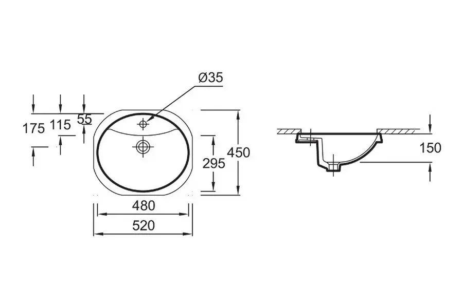 Раковина встраиваемая Jacob Delafon Odeon 48х41