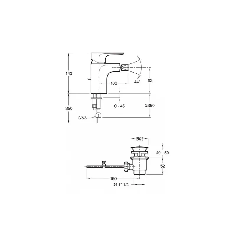 Смеситель для биде Jacob Delafon Aleo с донным клапаном E72279-CP