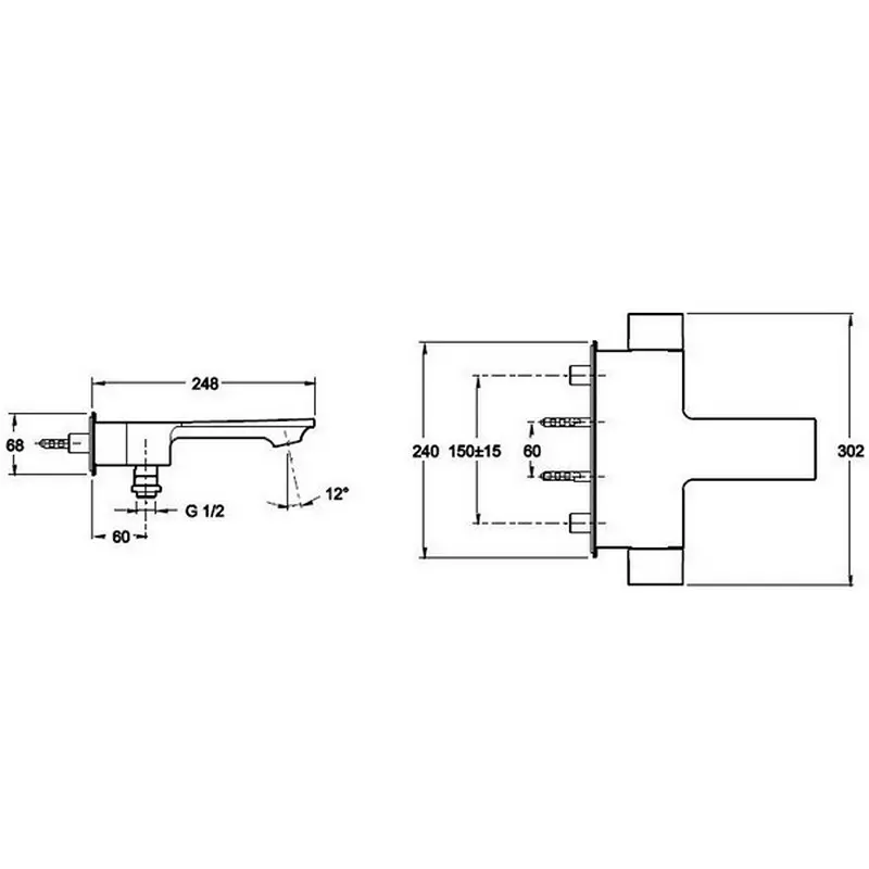 Смеситель для ванны Jacob Delafon Stance E9103-CP имеет литой излив. Изготовлен из качественной латуни и имеет защитное покрытие, что способствует устойчивости к коррозии и резким перепадам температуры. Управление термостатическое, настенный монтаж на два отверстия.