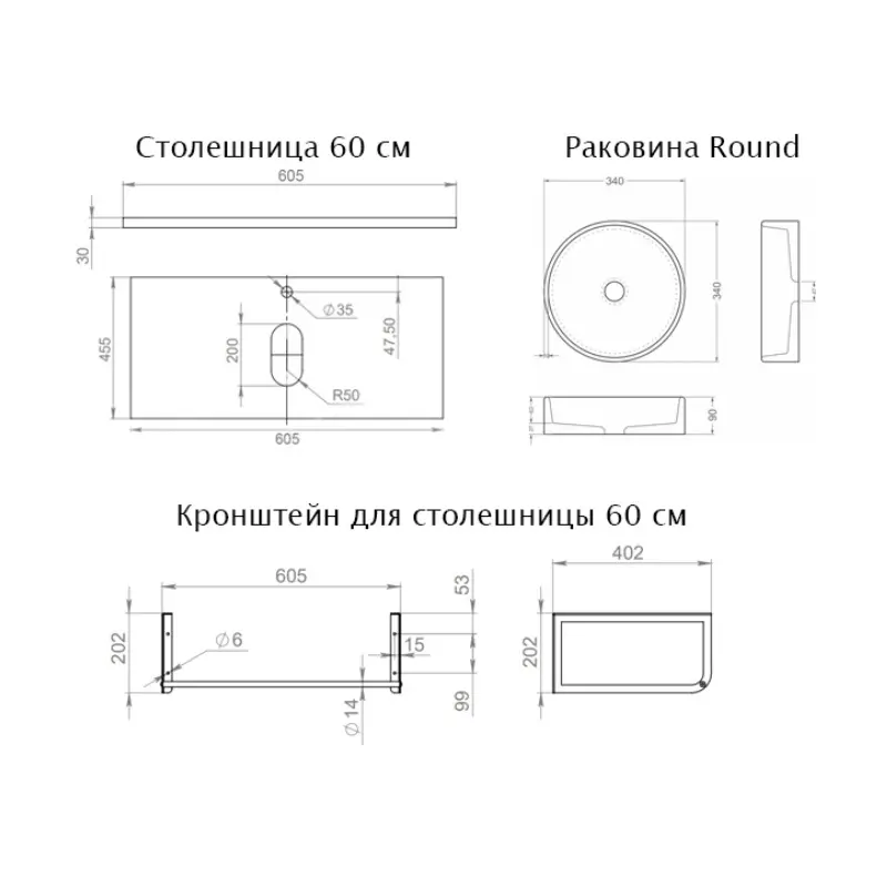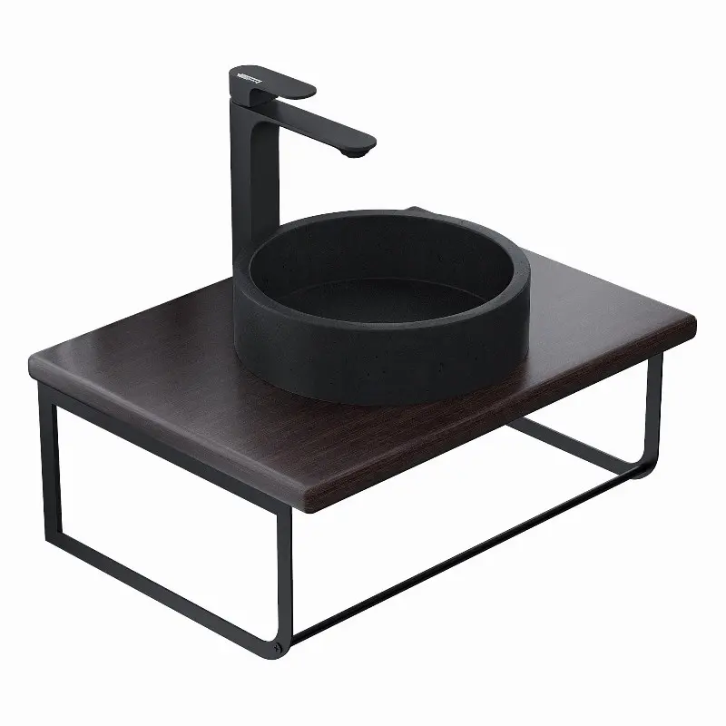 Столешница Uperwood Tanos 60 + раковина Round + кронштейн Черный / Бук темный
