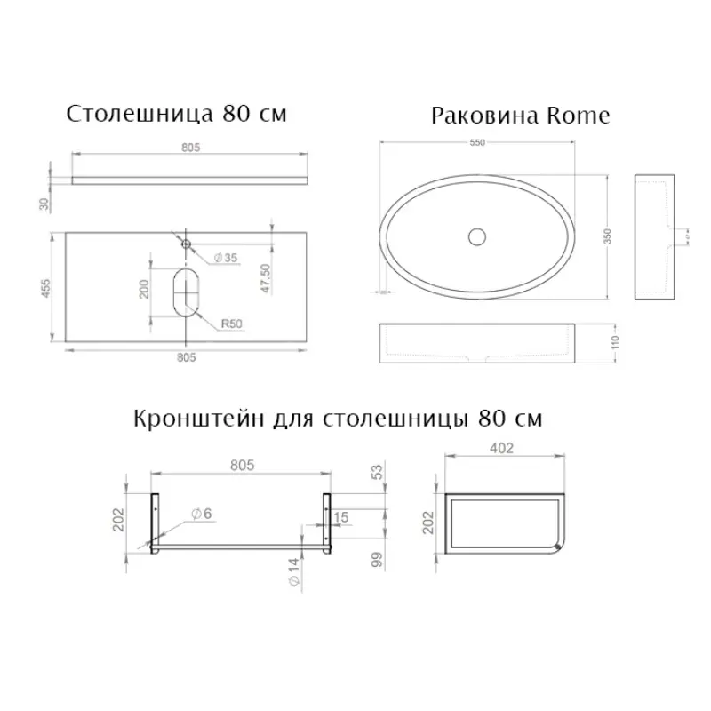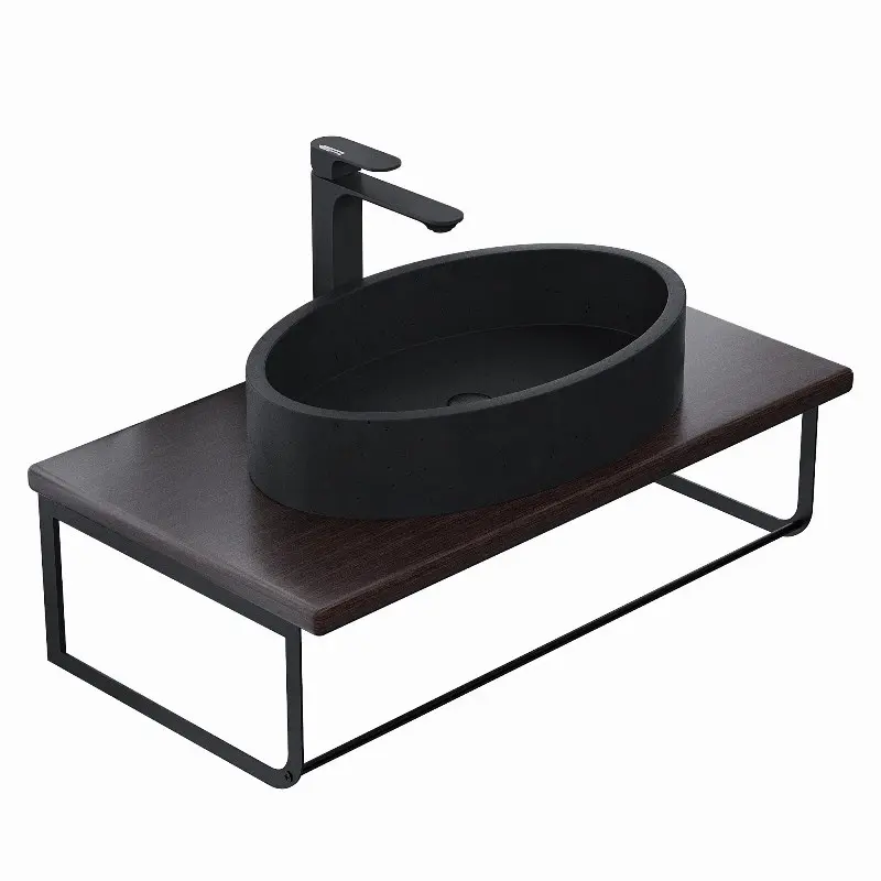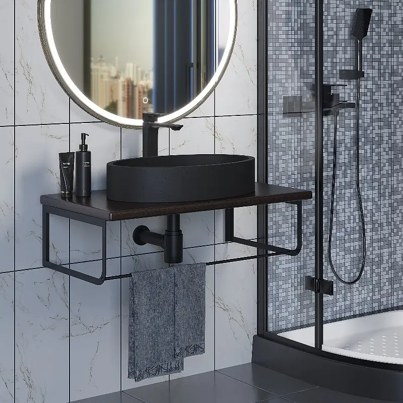 Столешница Uperwood Tanos 80 + раковина Rome + кронштейн Черный / Бук темный