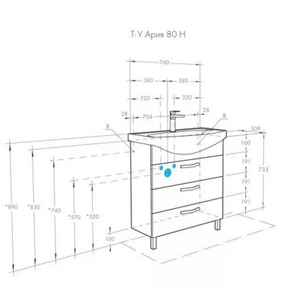 Тумба напольная Aquaton Ария 76 с раковиной SMILE Белый глянцевый 1A1413K0AA010