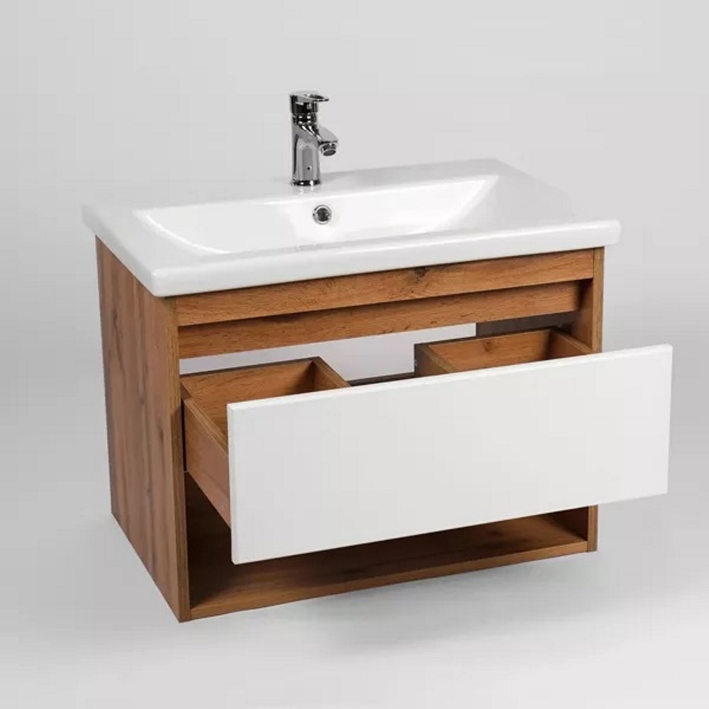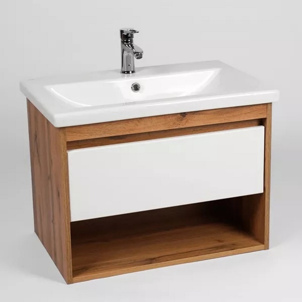 Тумба подвесная Viant Бостон 80 с раковиной Como Белый / Дуб Вотан VBOS80CO-T1YP
