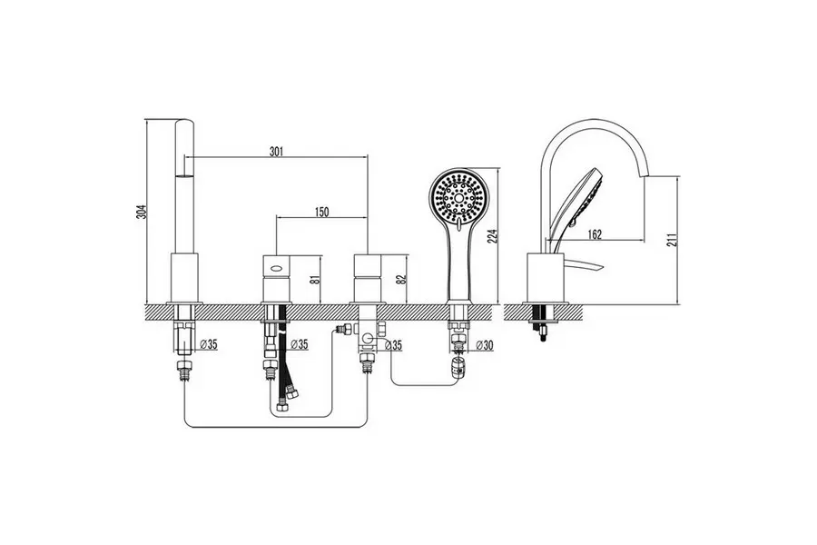 | Тип изделия | Смеситель на борт ванны |